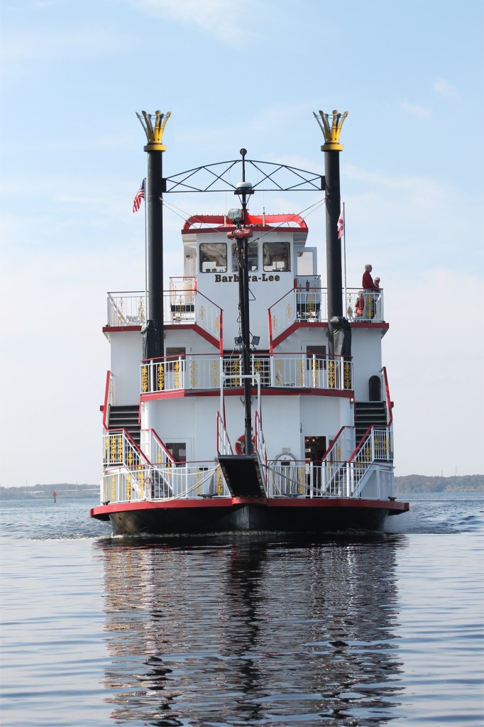 The St. Johns Rivership Co. is located in Historic Downtown Sanford. The city is situated on Lake Monroe and the Barbara-Lee is docked on Marina Island. The Barbara-Lee sets sail on a weekly schedule of two, three and four-hour sternwheeler cruises. Dining options include lunch and dinner, as well as special themed cruises like “Rockin’ on the River” and new options in 2024 including Karaoke, Wine Wednesday, and Music Bingo.