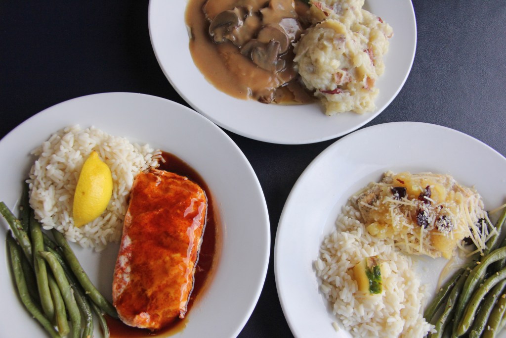 Indulge in the delightful Prime Rib, a USDA choice cut, paired with homemade horseradish sauce, seasoned mashed potatoes, and vegetables. For those craving a taste of the tropics, savor the slow-roasted Tropical Chicken, topped with Parmesan cheese and a fresh mango-pineapple chutney. Explore other tempting options like the savory Chicken Marsala and the Chicken Parmesan - each dish guarantees a unique and satisfying experience for your palate. Tasty vegan options are also available for those requiring meatless dishes.